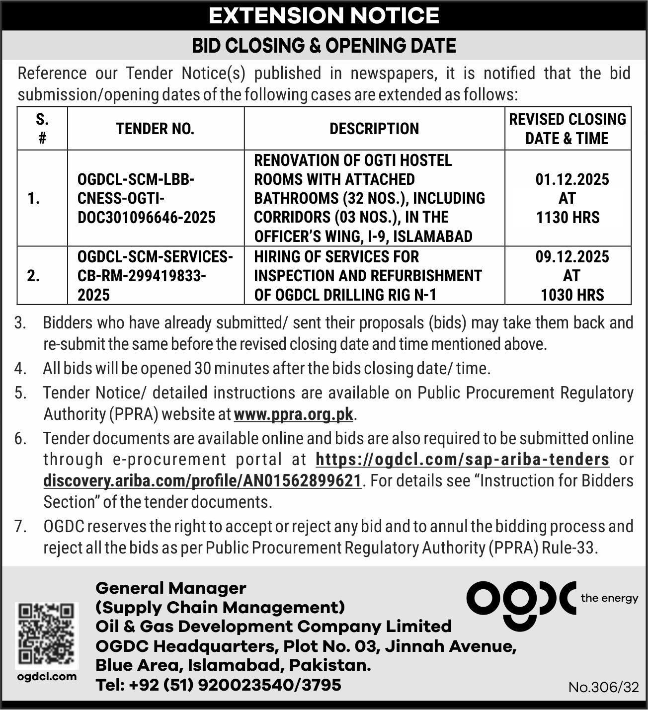 π Tender No: OGDCL-SCM-LBB-CNESS-OGTI-DOC301096646-2025, OGDCL-SCM-SERVICES-CB-RM-299419833-2025
