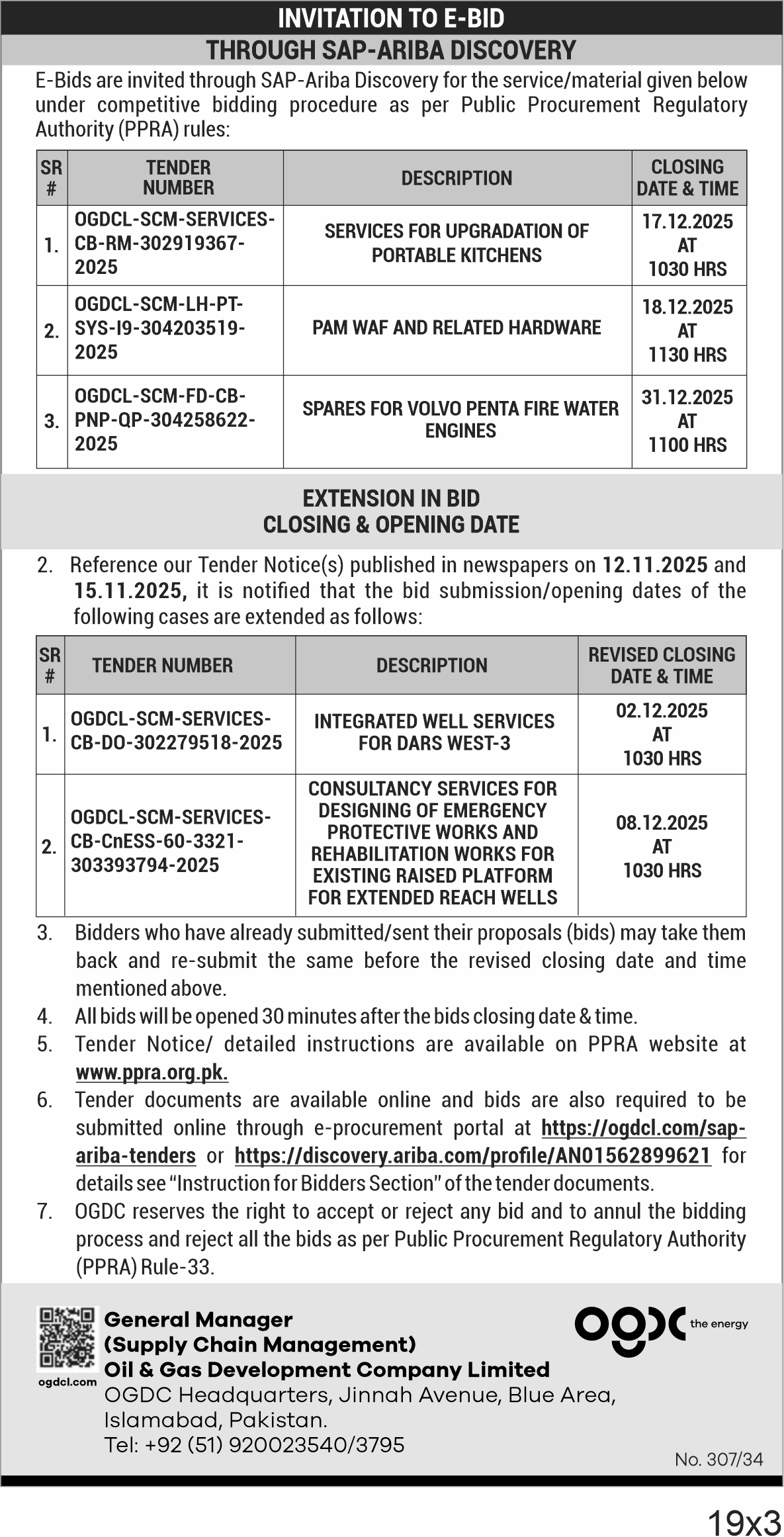 π Tender No: OGDCL-SCM-SERVICES-CB-RM-302919367-2025