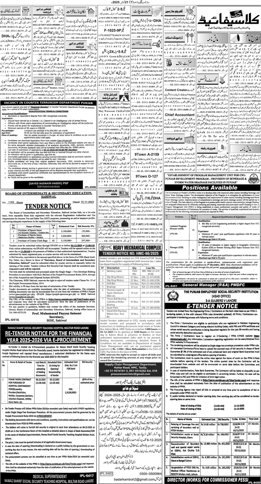 ποΈ Issuing Authority:Nawaz Sharif Social Security Teaching Hospital Multan Road Lahore