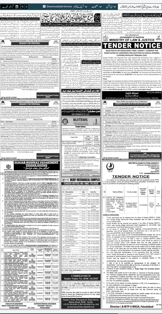 π Tender No: No. 4(1) Ministry of Law & Justice Islamabad Phone Number: 8223356