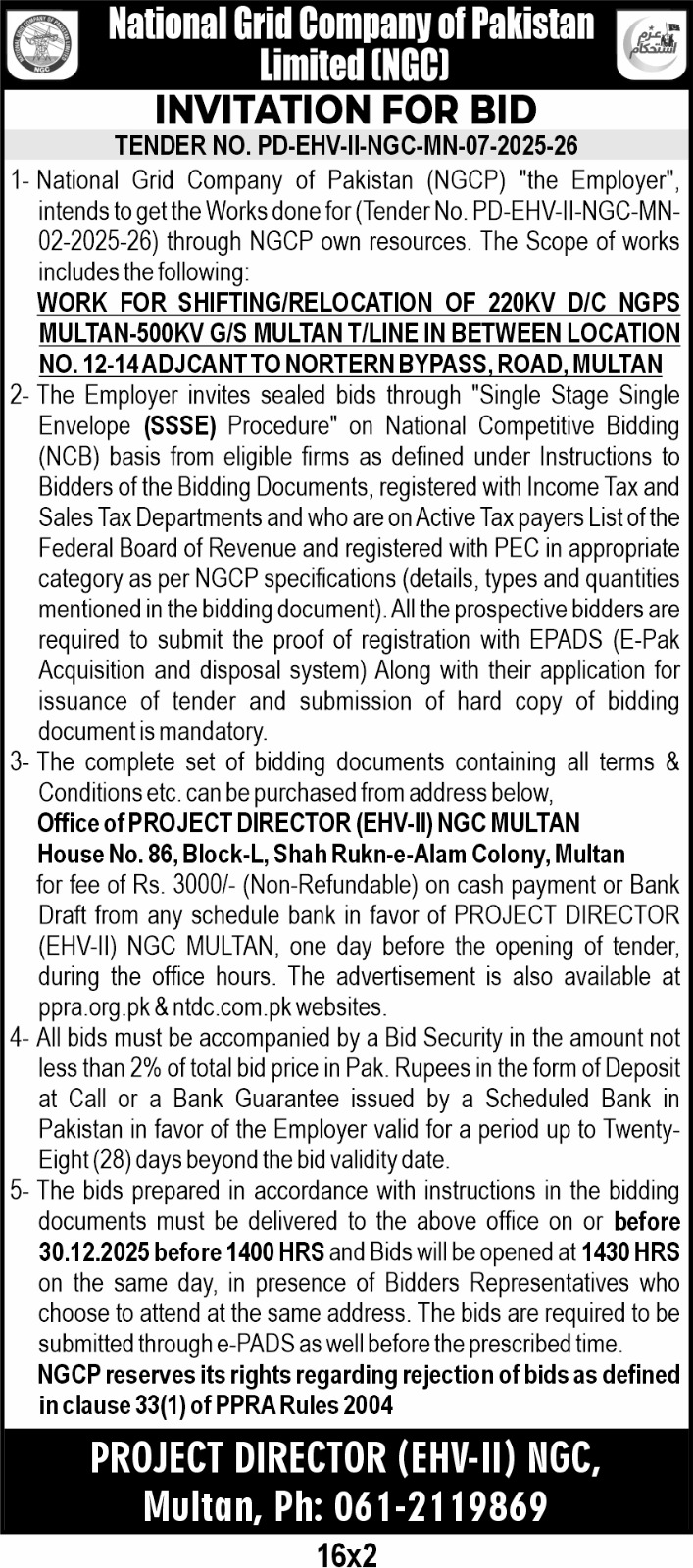 ποΈ Issuing Authority:National Grid Company of Pakistan Limited (NGC)