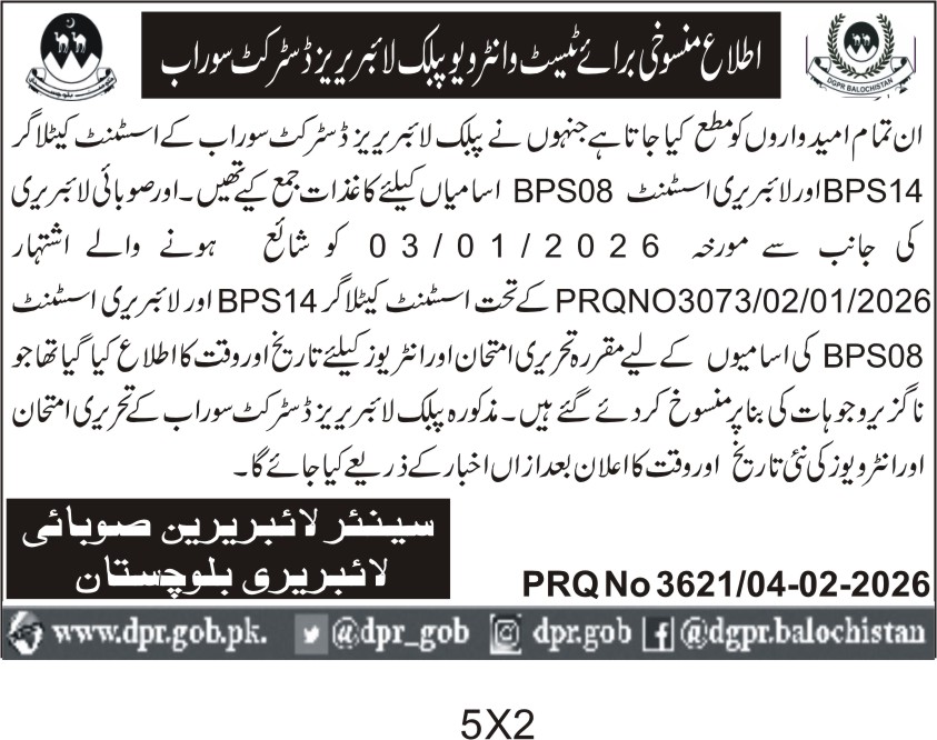 Recruitment of Assistant BPS-08 and BPS-14 for District Surab