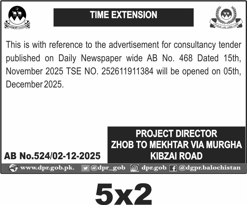 ποΈ Issuing Authority:Project Director Zhob to Mekhtar via Murgha Kibzai Road