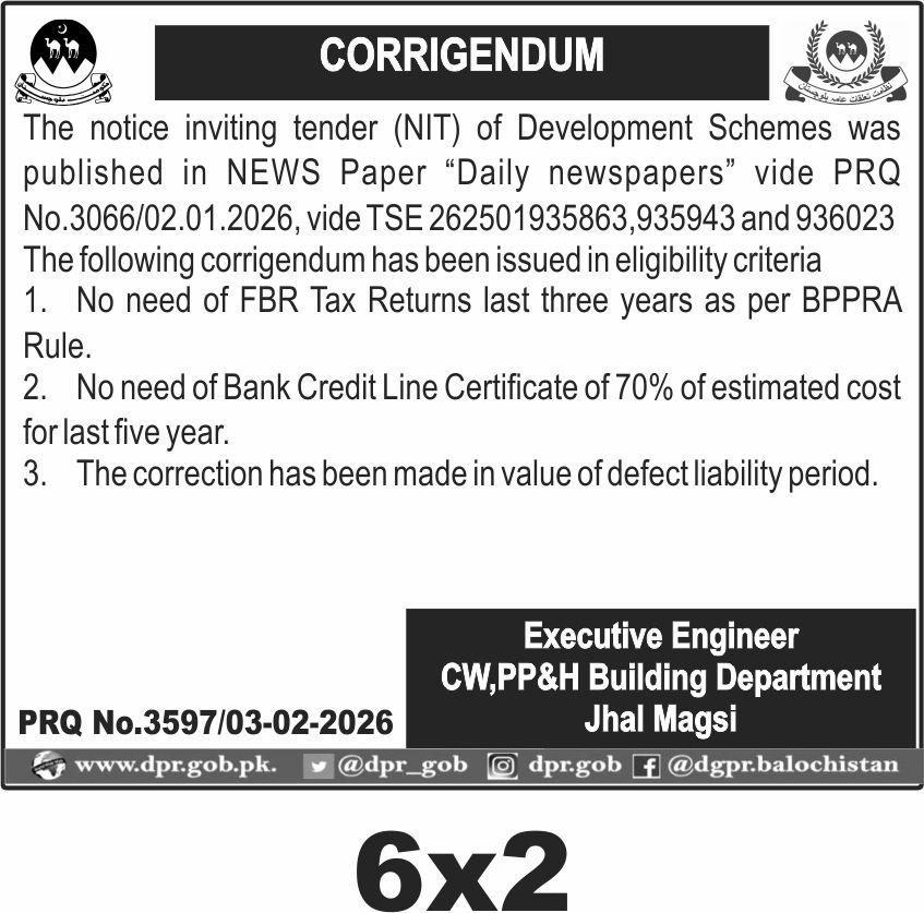 ποΈ Issuing Authority:CW, PP&H Building Department, Jhal Magsi