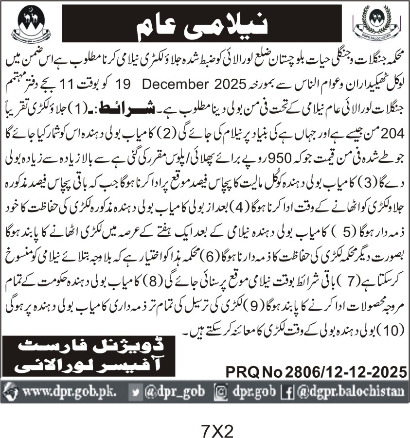 ποΈ Issuing Authority:Department of Wildlife and Forests, Balochistan
