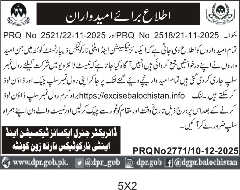 Excise and Taxation Department Balochistan Narcotics Department PRQ Submissions