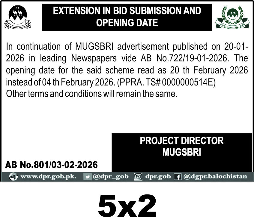 Extension of Bid Submission and Opening Date for MUGSBRI Scheme