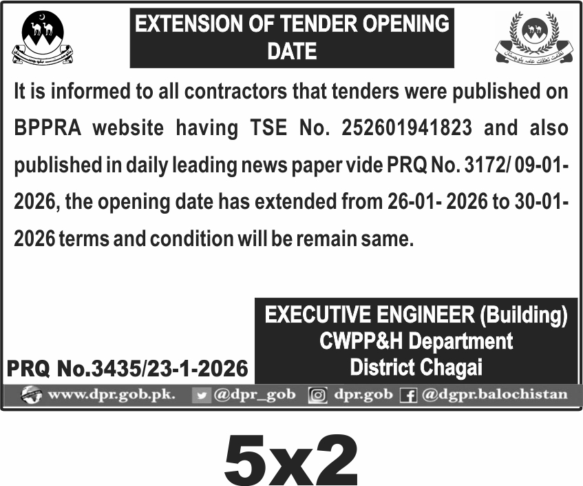 Extension of Tender Opening Date for Construction Works in District Chagai