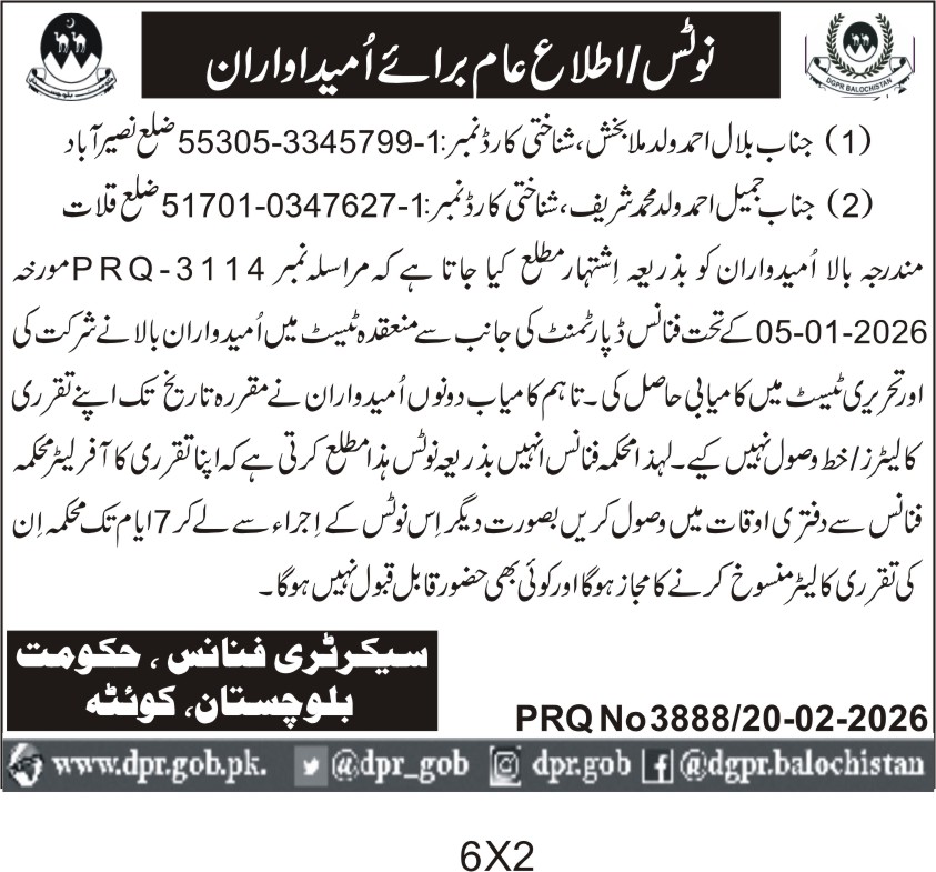 ποΈ Issuing Authority:Finance Department, Government of Balochistan