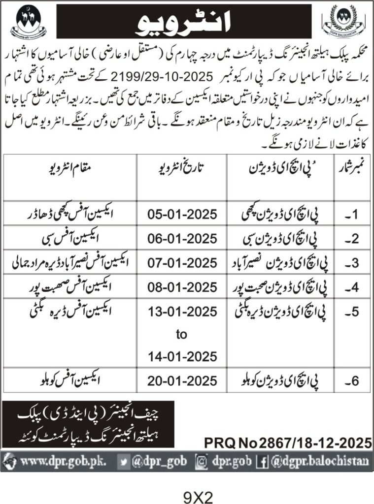 ποΈ Issuing Authority:Public Health Engineering Department (PHED) Balochistan