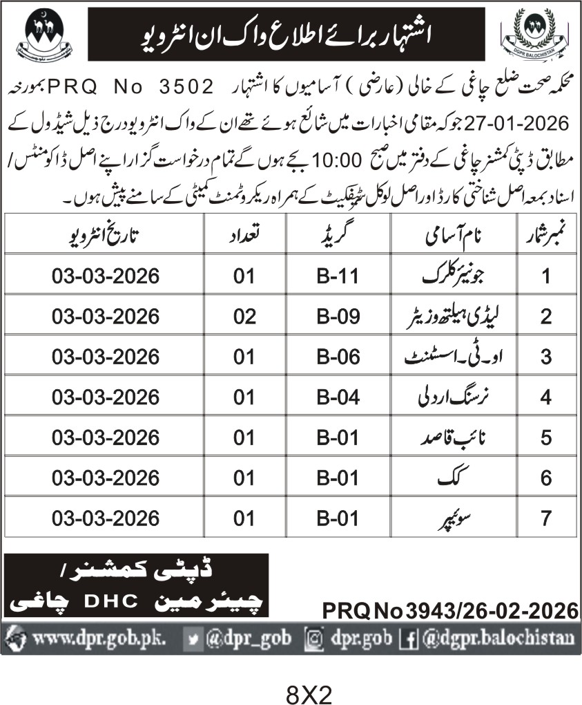 ποΈ Issuing Authority:Health Department, Chagai District