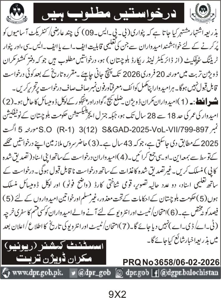 ποΈ Issuing Authority:Government of Balochistan, Office of Commissioner Mekran Division Turbat