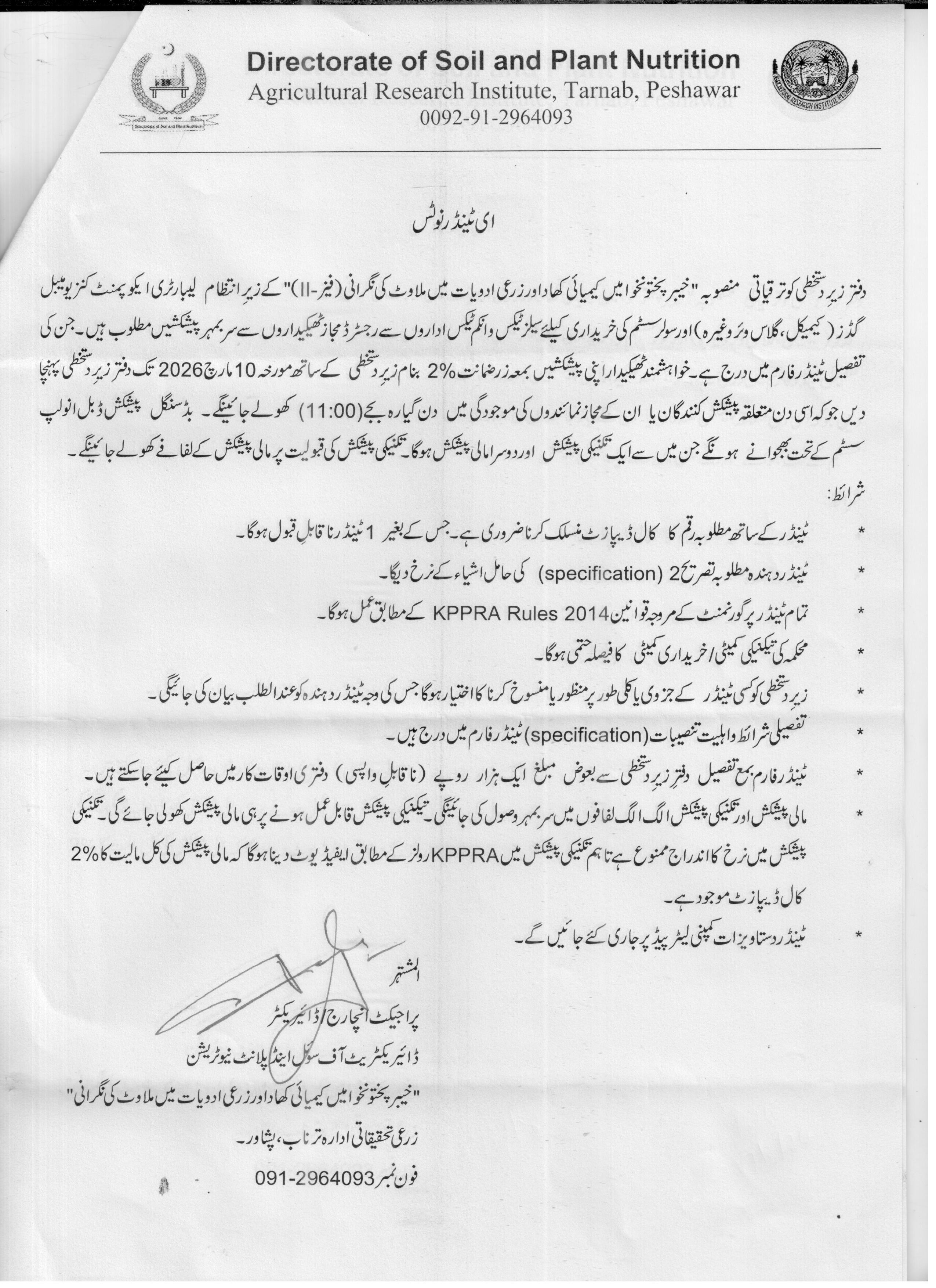 ποΈ Issuing Authority:Directorate of Soil and Plant Nutrition, Agricultural Research Institute, Tarnab, Peshawar