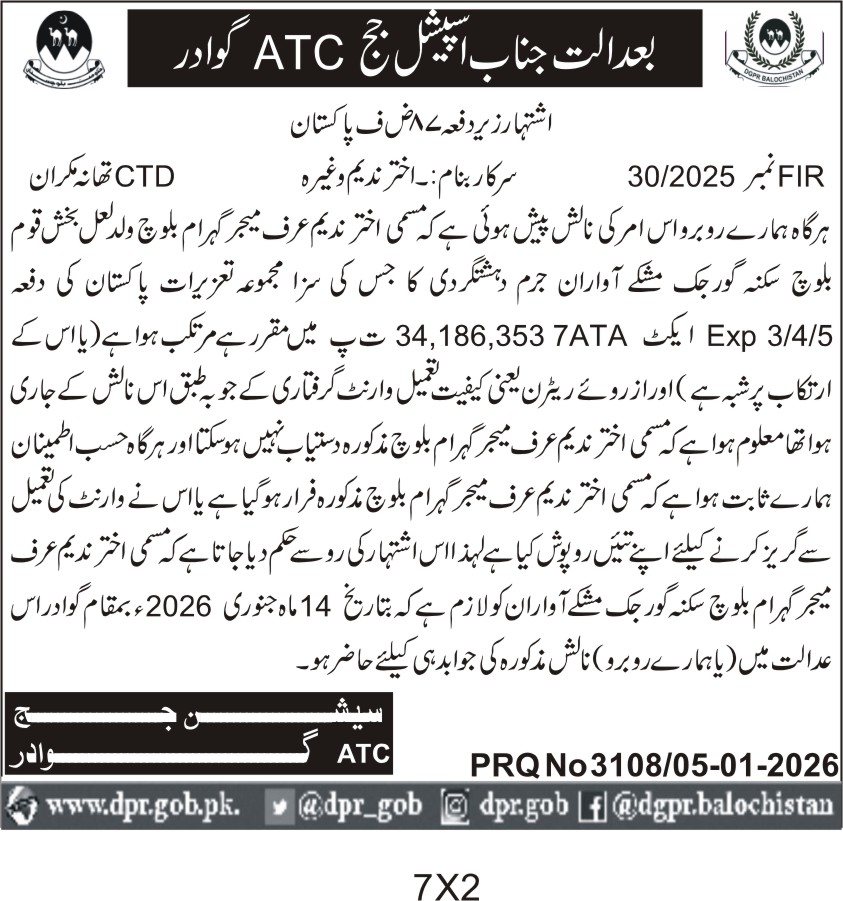ποΈ Issuing Authority:Balochistan Police, ATC Gwadar