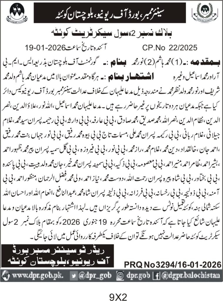 ποΈ Issuing Authority:Board of Revenue Balochistan