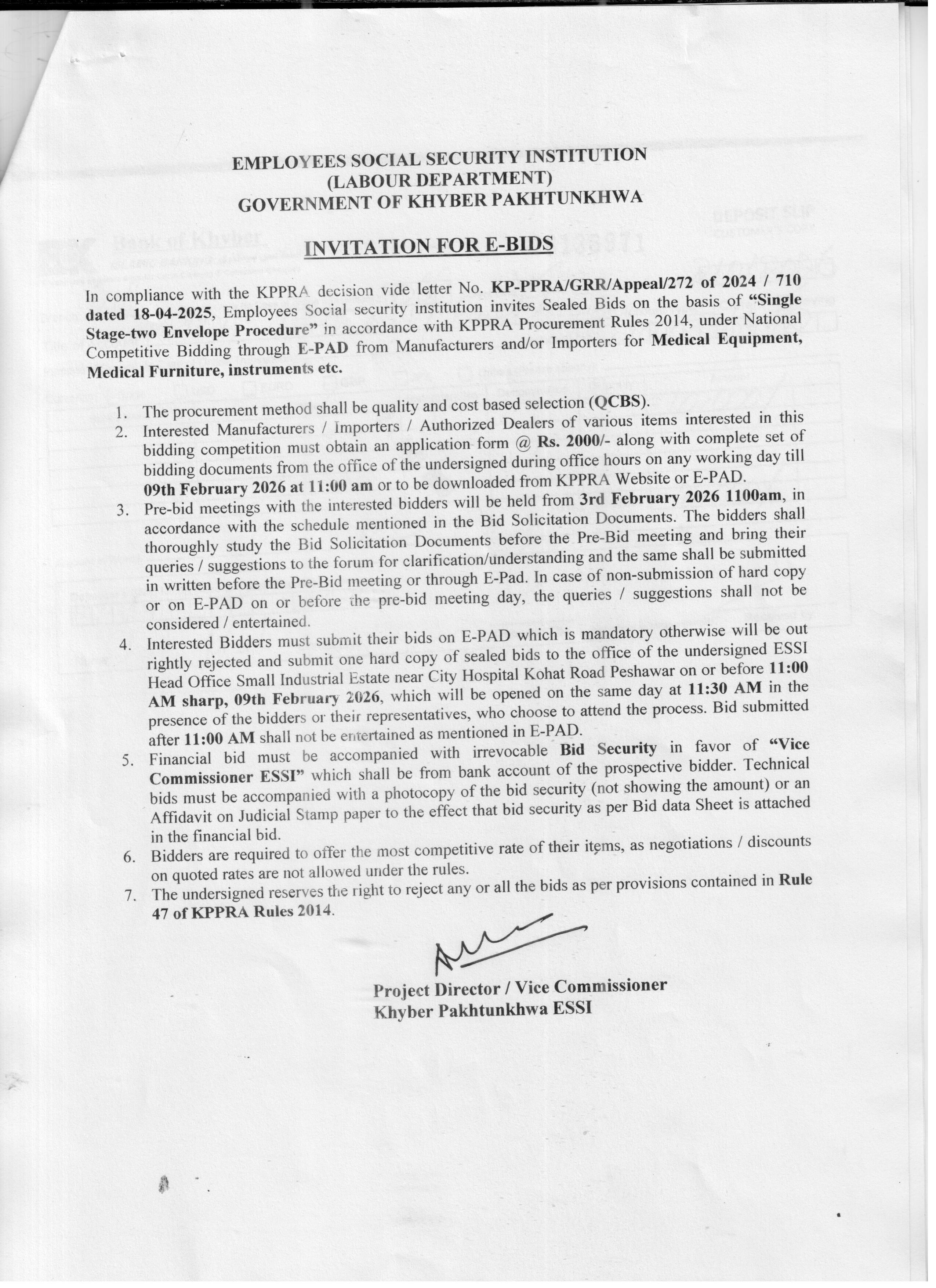 ποΈ Issuing Authority:Employees Social Security Institution, Labour Department, Government of Khyber Pakhtunkhwa