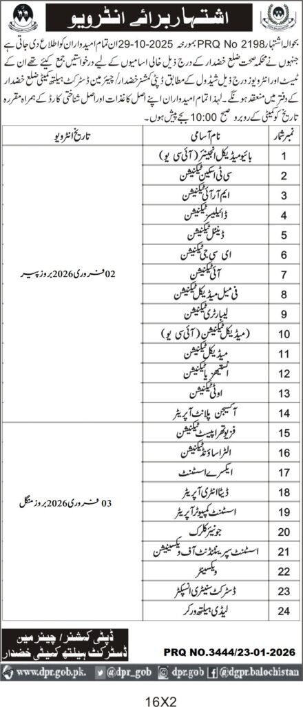 The recruitment process involves submission of original documents and CNIC copies by the candidates to the District Health Committee office. The positions demand technical expertise in medical diagnostics and support services, essential for improving patient care in Khuzdar. The committee will conduct interviews and selections on specified dates in February 2026, ensuring transparency and merit-based hiring.
