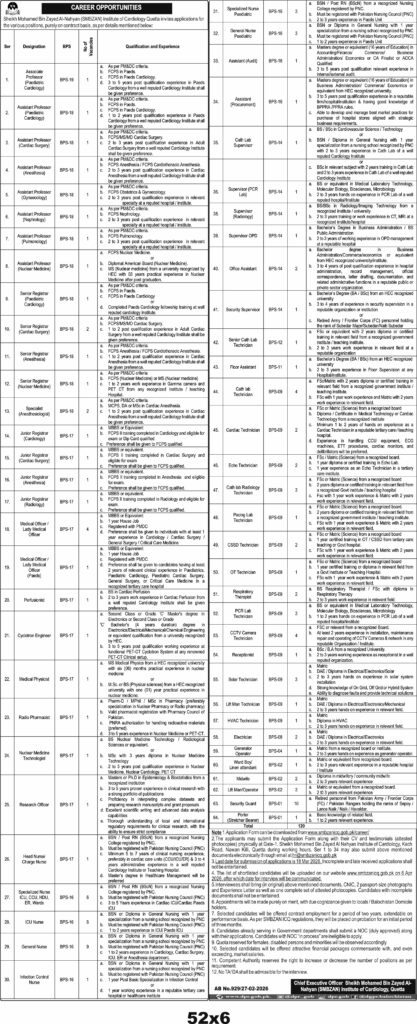 Recruitment of Medical and Technical Staff at Sheikha Mohammed Bin Zayed Al-Nahyan Institute of Cardiology Quetta