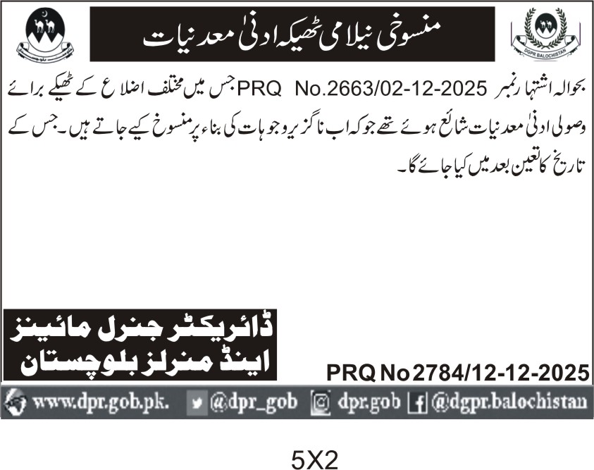 ποΈ Issuing Authority:Director General Mines and Minerals Balochistan