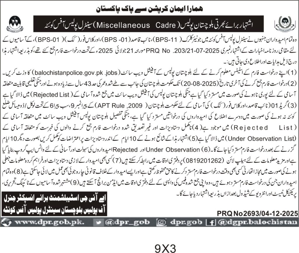 ποΈ Issuing Authority:Balochistan Police Central Police Office Quetta
