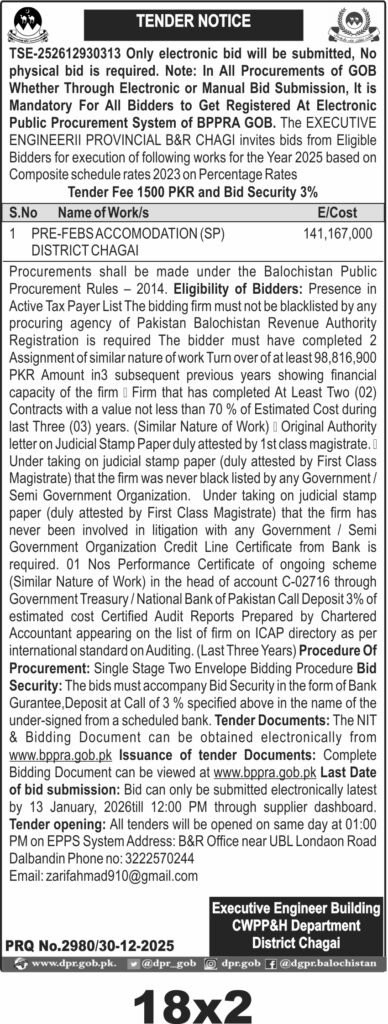 ποΈ Issuing Authority:Building Construction and Works Provincial B&R Chagai