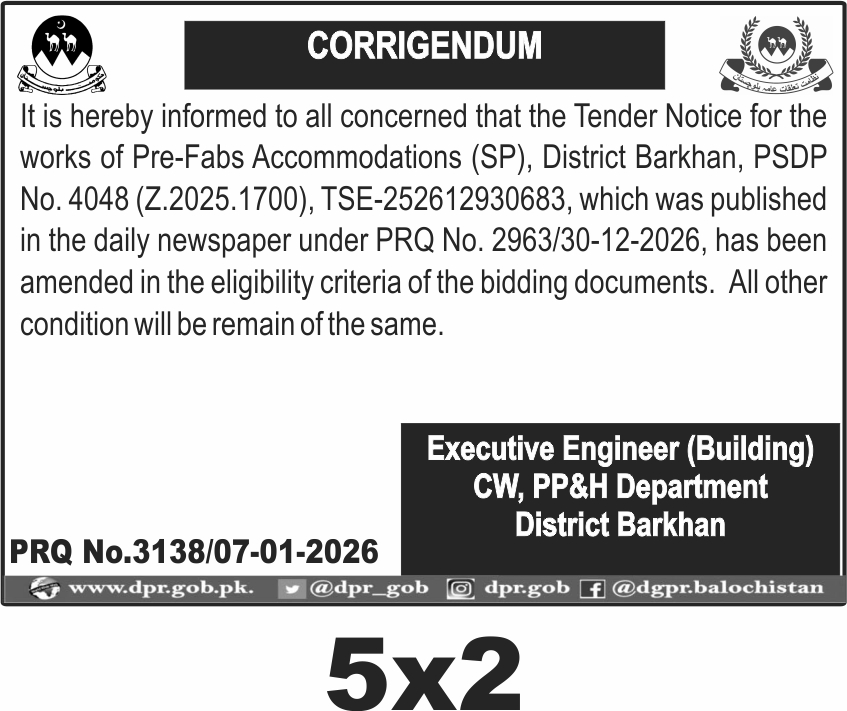 ποΈ Issuing Authority:Public Works Department, District Barkhan