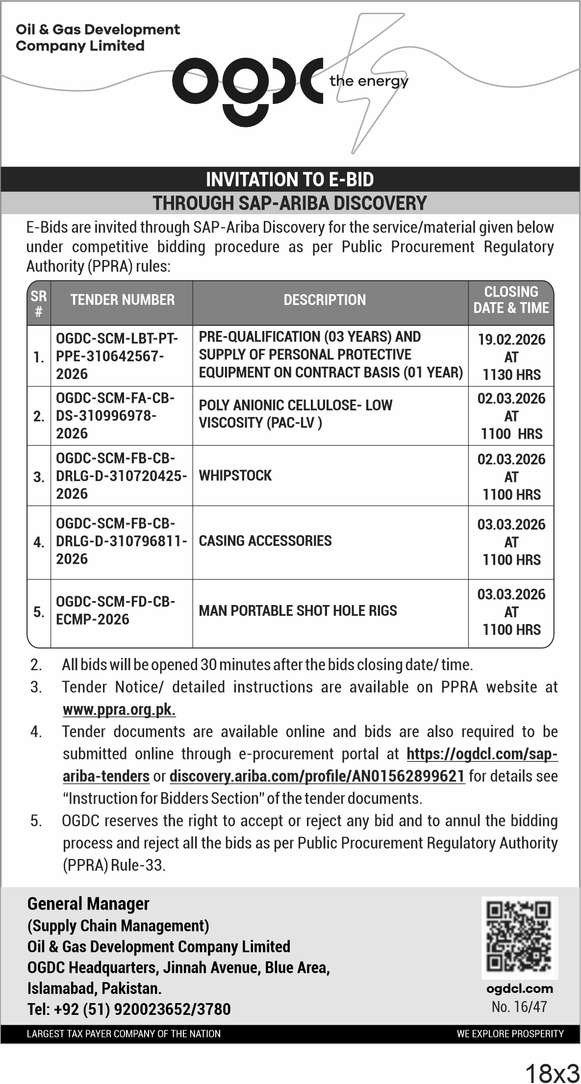 π Tender No: OGDC-SCM-LBT-PT-PPE-310642567-2026