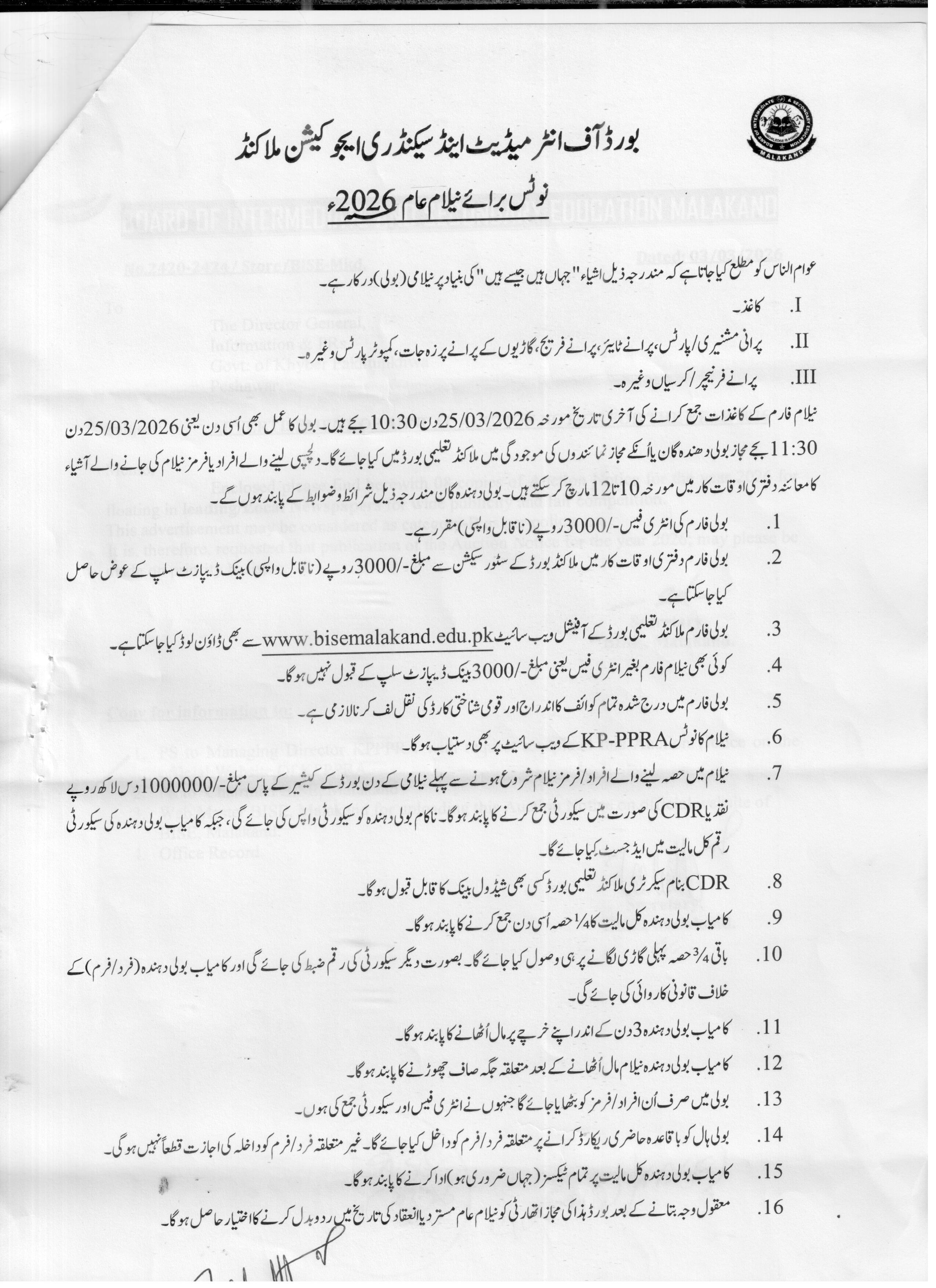ποΈ Issuing Authority:Board of Intermediate and Secondary Education Malakand