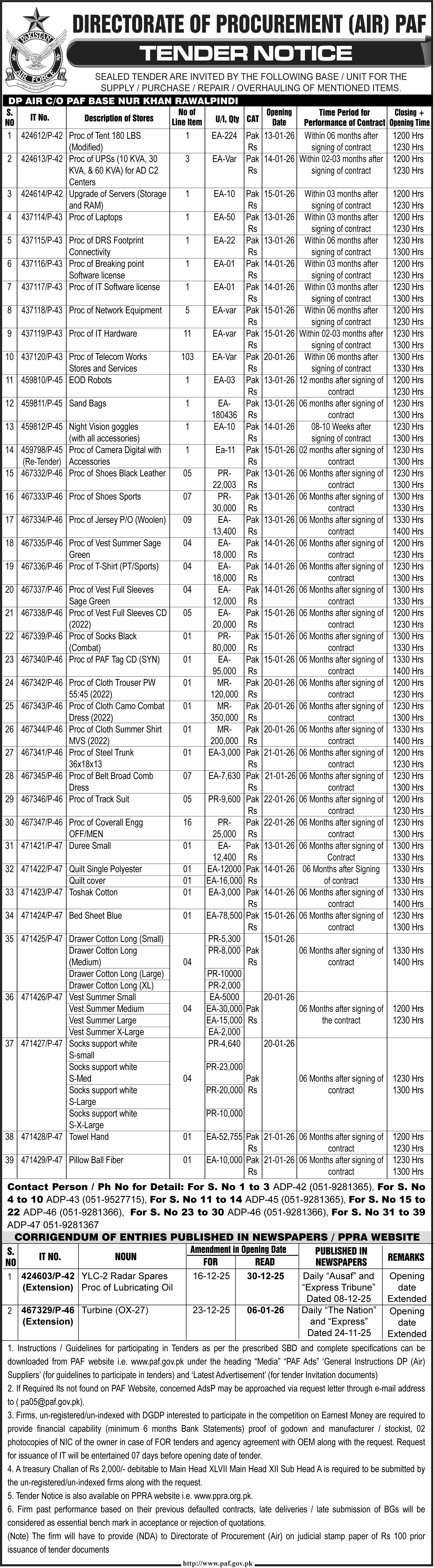ποΈ Issuing Authority:Directorate of Procurement (Air), Pakistan Air Force