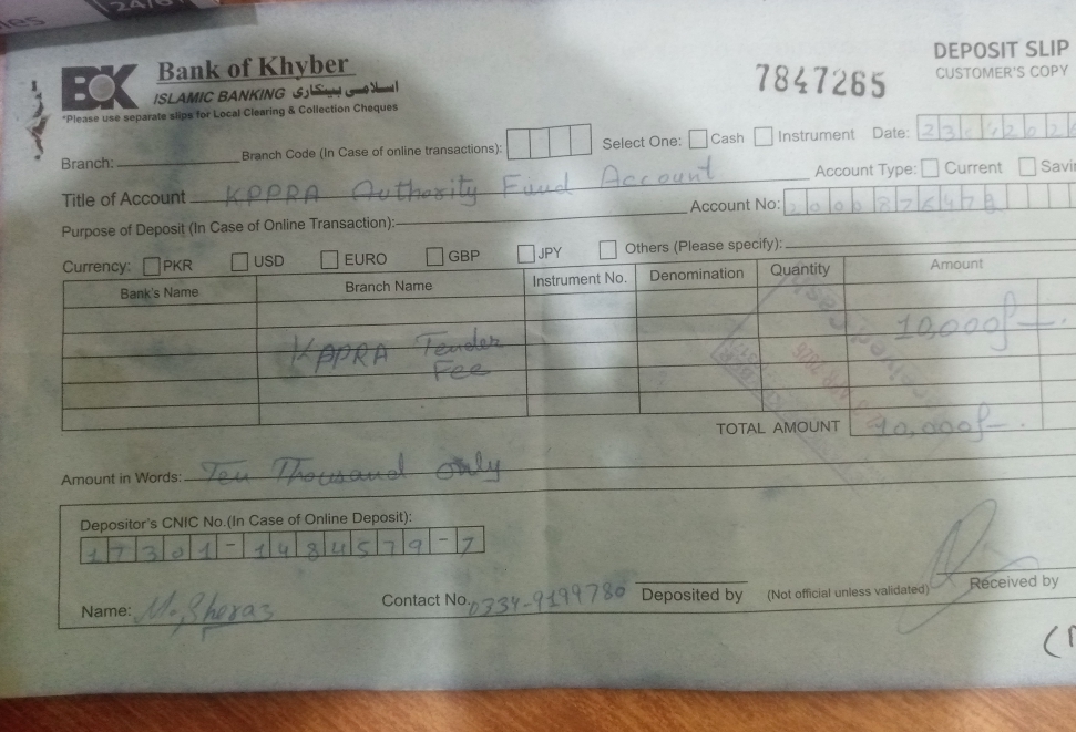 The Khyber Pakhtunkhwa Public Procurement Regulatory Authority is inviting suppliers and service providers to participate in the procurement process related to tender fee deposit services. This procurement is specifically managed by the Khyber Pakhtunkhwa PPRA, indicating the regional focus within the province of Khyber Pakhtunkhwa.