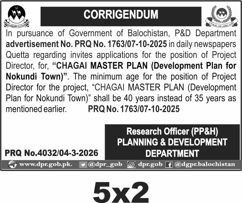 ποΈ Issuing Authority:Planning and Development Department, Government of Balochistan