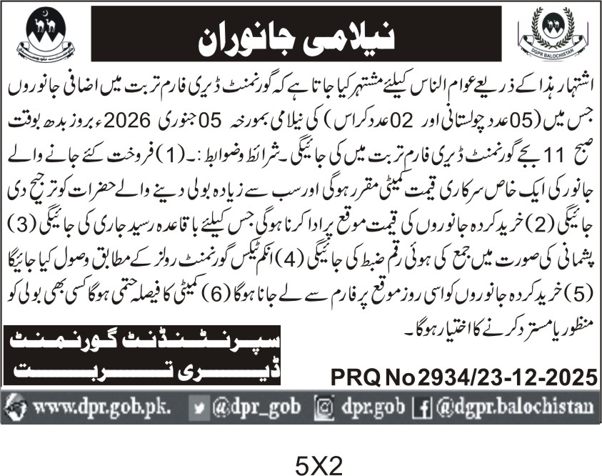 ποΈ Issuing Authority:Balochistan Department of Livestock