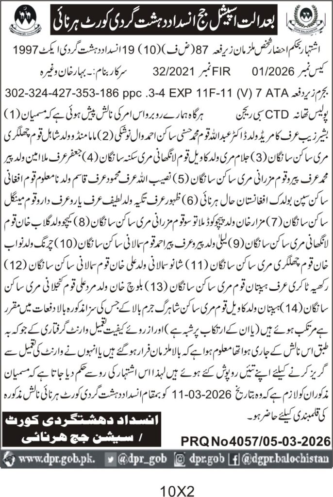 ποΈ Issuing Authority:Anti-Terrorism Court Jaffarabad