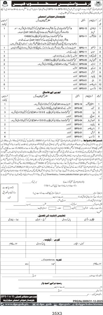 This recruitment drive in Quetta by the Balochistan Home Department and MPA House focuses on filling multiple government posts ranging from BPS-1 to BPS-15. The positions include clerks, drivers, Naib Qasid, Chowkidar, and other support staff essential for departmental operations. The recruitment is aimed at strengthening administrative and operational capacity within the provincial government.