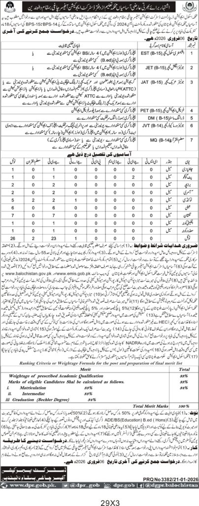 Recruitment of Teaching and Non-Teaching Staff for Balochistan Education Department 2026
