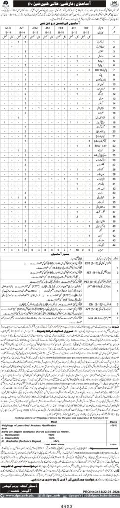 Recruitment of Teaching and Non-Teaching Staff for Balochistan Department of Education