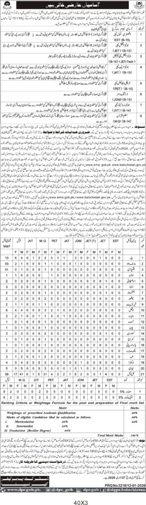 Recruitment of Various Technical and Non-Technical Positions in Balochistan