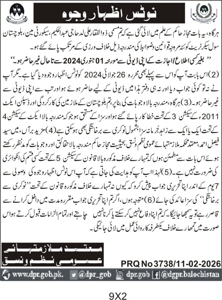 ποΈ Issuing Authority:Balochistan Public Relations Department
