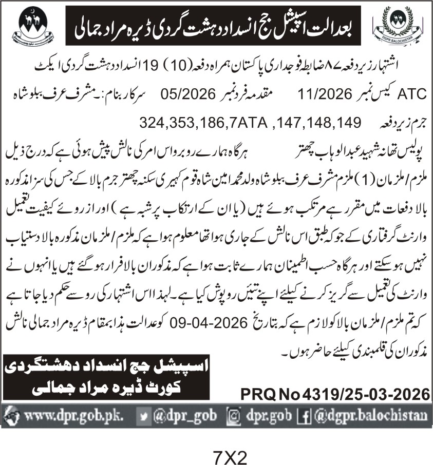 Security Services for Special Judge Anti-Terrorism Court Dera Murad Jamali