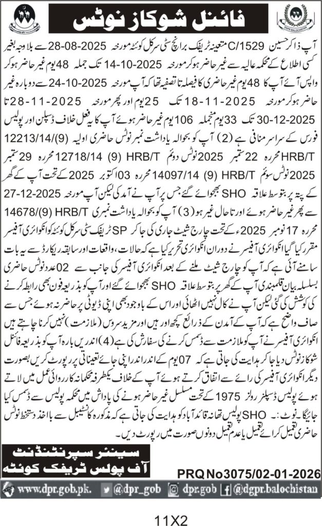 ποΈ Issuing Authority:Balochistan Police Department