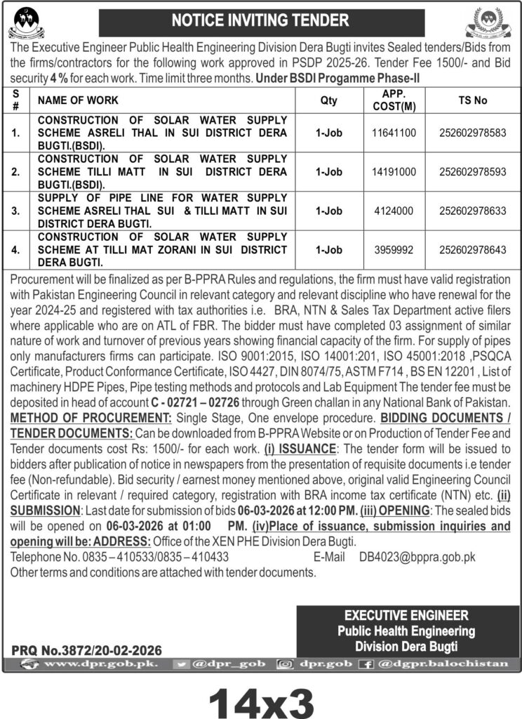 ποΈ Issuing Authority:Public Health Engineering Division Dera Bugti