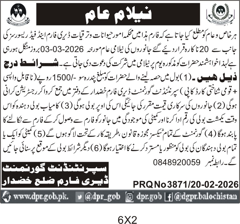 ποΈ Issuing Authority:Superintendent Government Dairy Farm Khuzdar