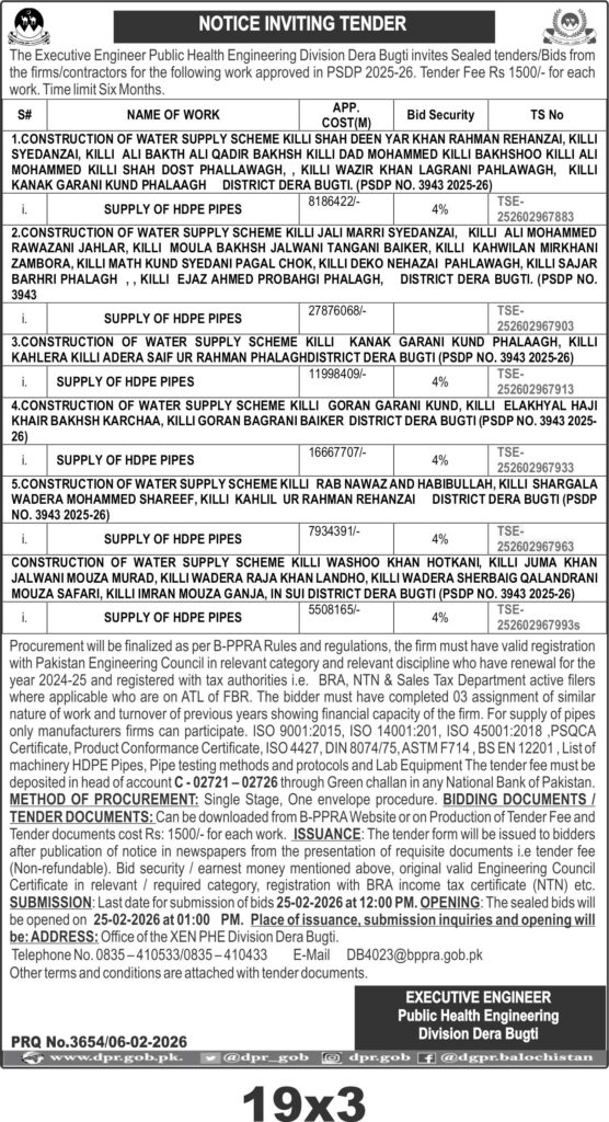 ποΈ Issuing Authority:Public Health Engineering Division Dera Bugti