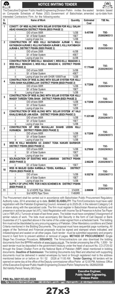 ποΈ Issuing Authority:Public Health Engineering Division Pishin